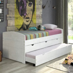 Cama Solteiro Com Cama Auxiliar Ulli Natural E Branca