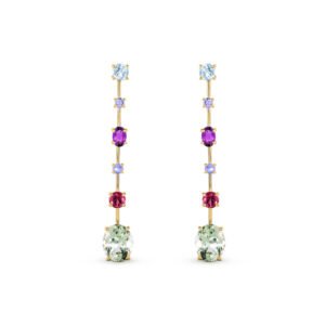 Brinco Pietre em Ouro Amarelo 18k com Ametistas Roxa, Turmalinas Rosa, Turmalinas Verde, Iolitas e Diamantes