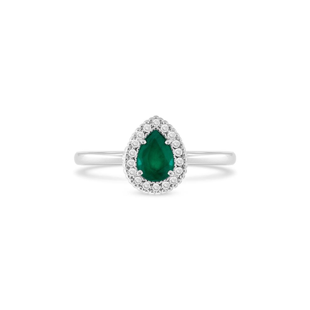 Anel Classic Oriental em Ouro Branco 18k com Esmeralda e Diamantes