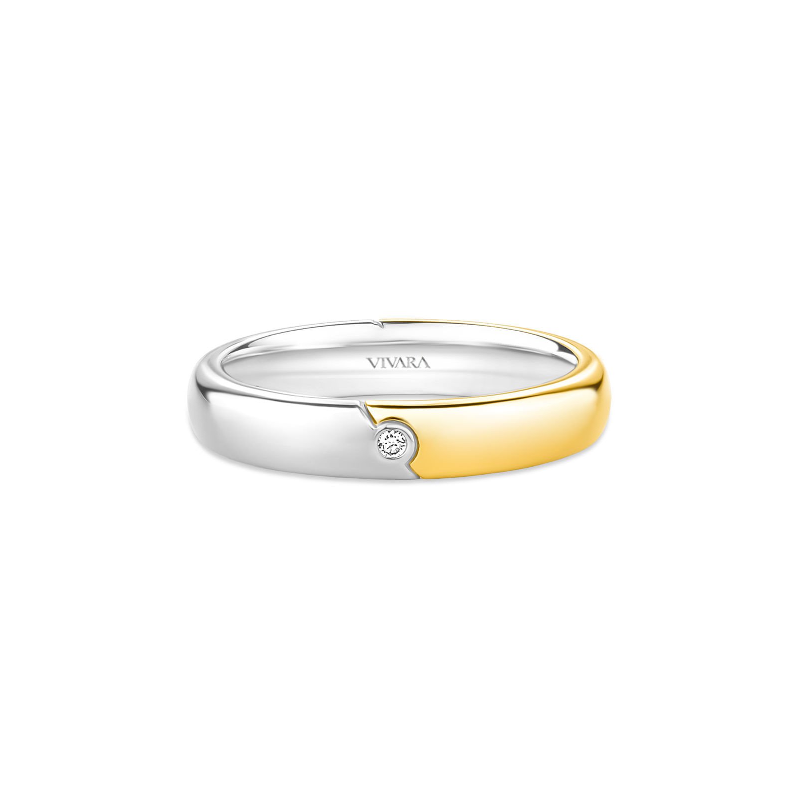 Anel Especial Date em Prata 925 e Ouro Amarelo 18k com Diamante 0,01ct