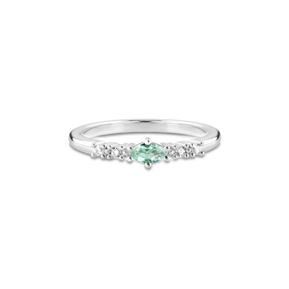 Anel Life Blend IV em Prata 925 com Pedra Verde e Incolores