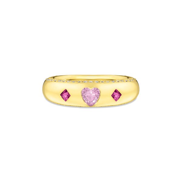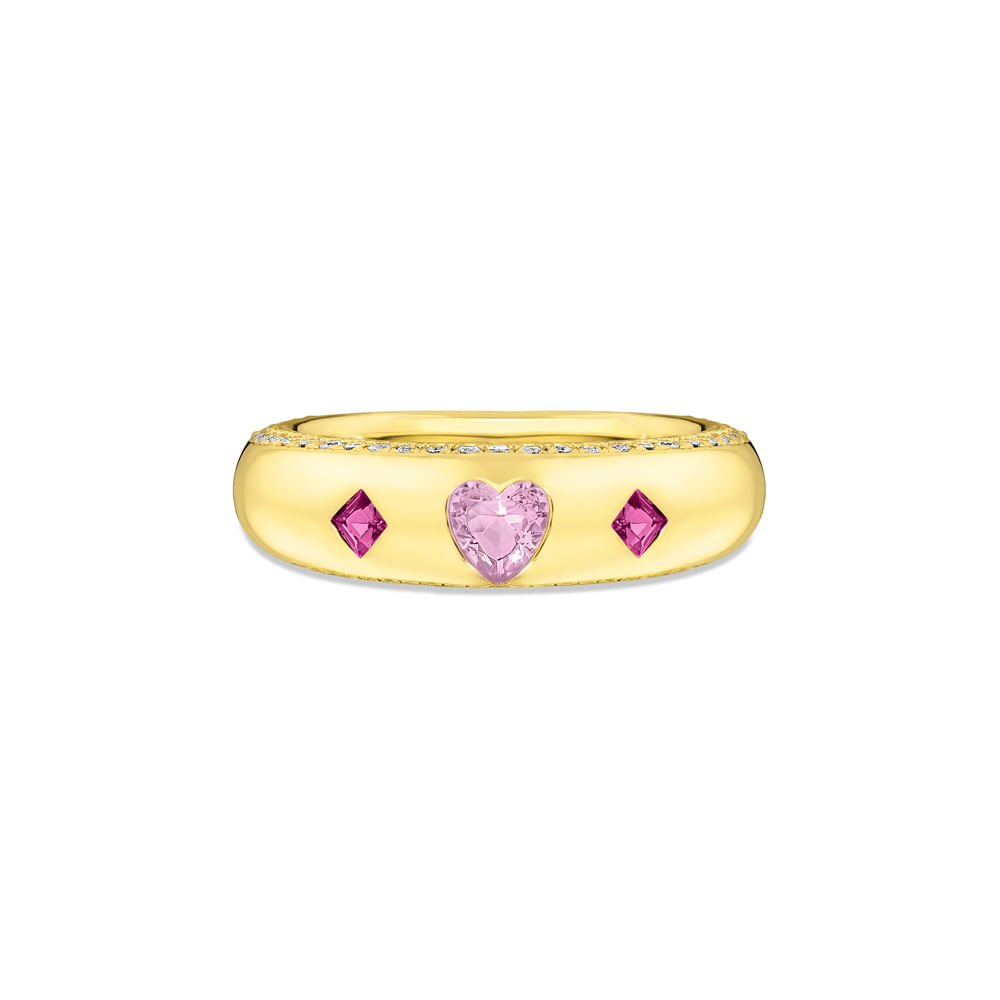 Anel Life Cora Coração em Prata 925 com Banho de Ouro Amarelo 18k e Pedras Rosas