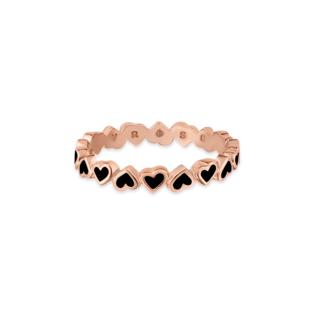 Anel Life Corações em Liga Rosé com Banho de Ouro Rosé 18k e Esmalte