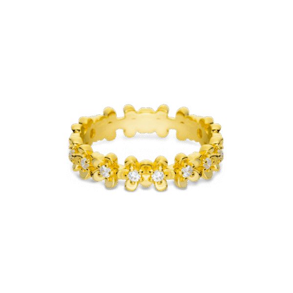Anel Life Flora Miosótis em Prata 925 com Banho de Ouro Amarelo 18k e Pedras Incolores