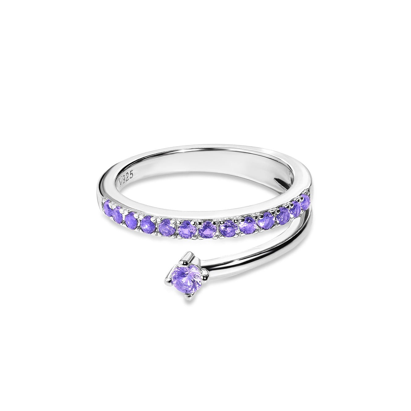 Anel Life Fresh Duplo em Prata 925 com Pedras Lilás