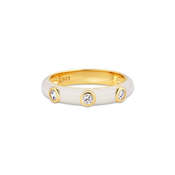 Anel Life Joyful em Prata 925 com Banho de Ouro Amarelo 18k, Pedras Incolores e Esmalte