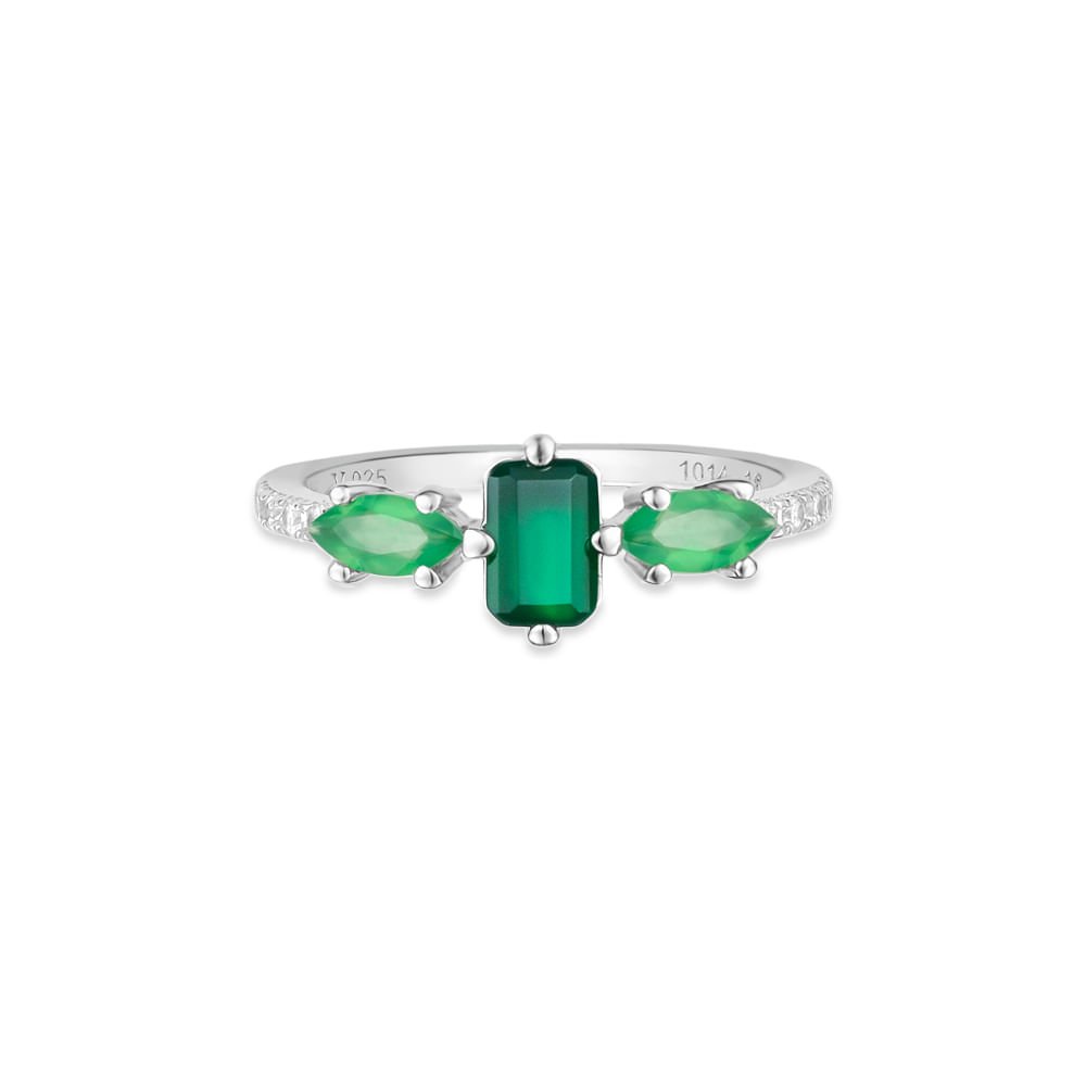 Anel Life Nature em Prata 925 com Ágata Verde, Calcedônias Verdes e Pedras Incolores
