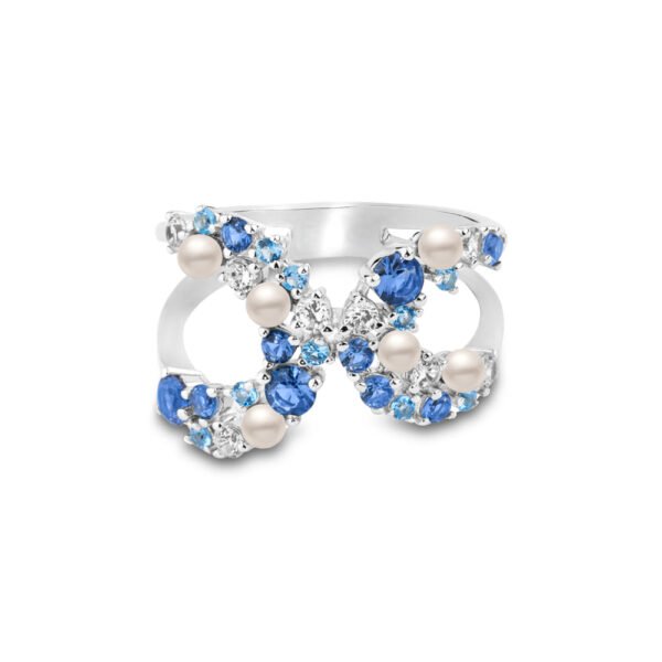 Anel Life Pacific em Prata 925 com Pedras Azuis, Incolores e Esferas Peroladas