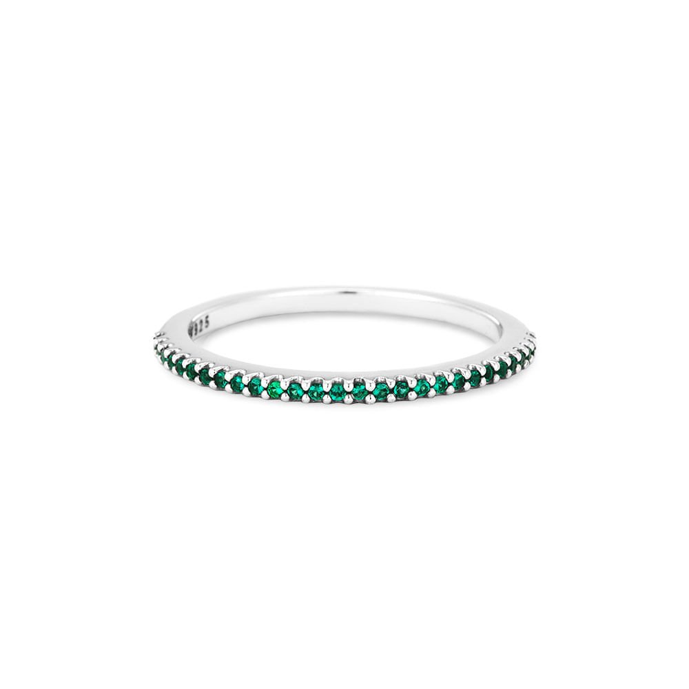 Anel Life Pavê em Prata 925 com Pedras Verdes