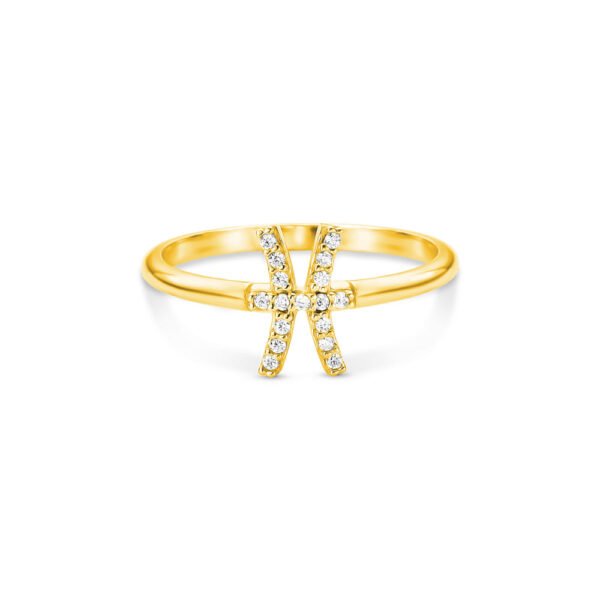 Anel Life Signo Peixes em Prata 925 com Banho de Ouro Amarelo 18k e Pedras Incolores