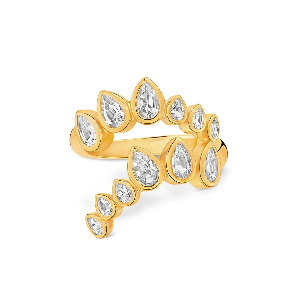 Anel Life Skyline II em Prata 925 com Banho de Ouro Amarelo 18k e Topázios Incolores