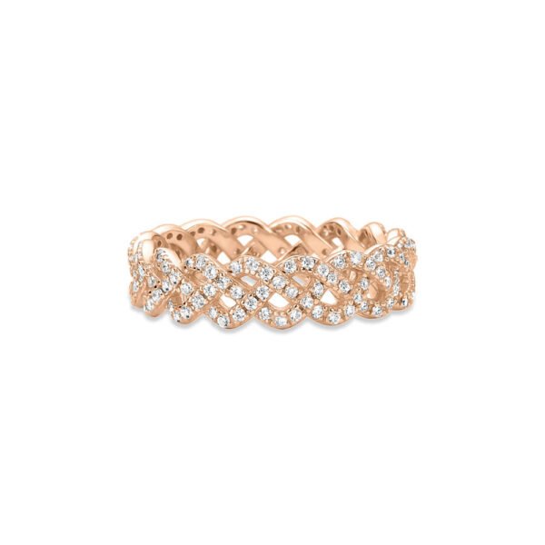 Anel Life Tranças em Liga Rosé com Banho de Ouro Rosé 18k e Pedras Incolores