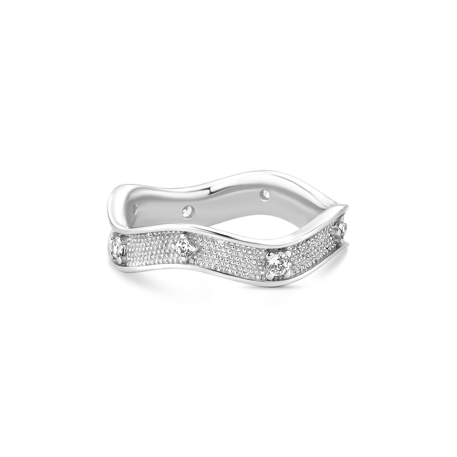 Anel Místico Alma de Ondas em Prata 925 com Pedras Incolores