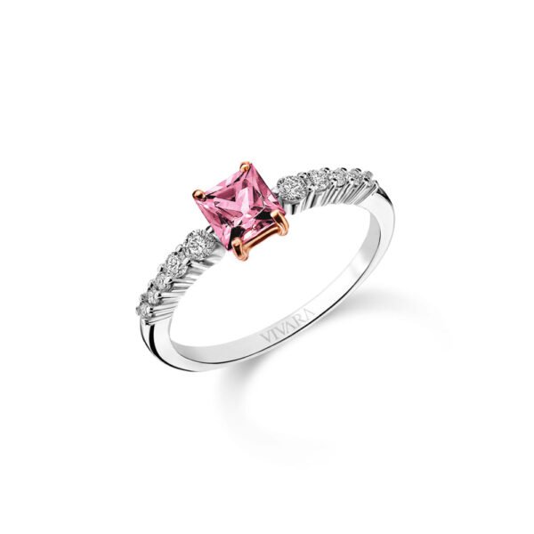 Anel Solitário Expressão em Ouro Branco e Ouro Rosé 18k com Turmalina e Diamantes 0,21 ct