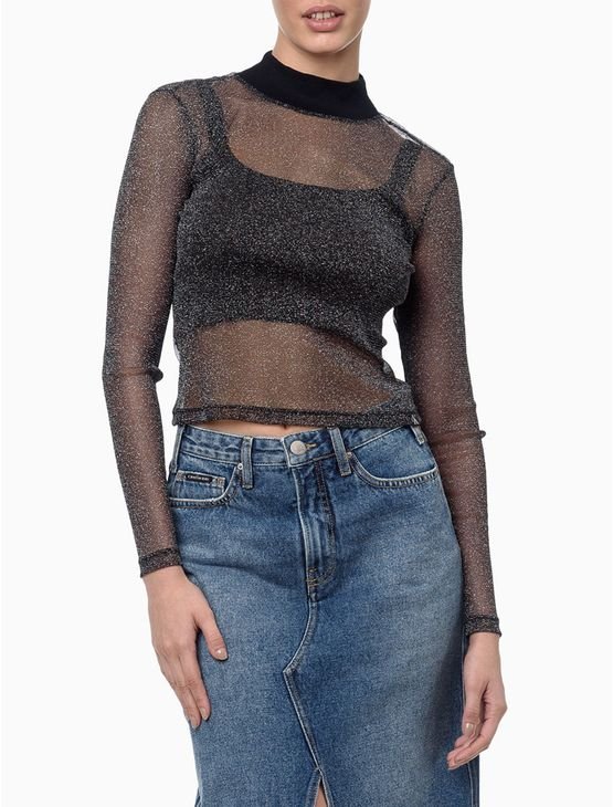 Blusa Feminina Manga Longa Gola Alta Tule Calvin Klein Jeans – Preto Blusa Feminina Manga Longa Gola Alta Tule Calvin Klein Jeans Preto p