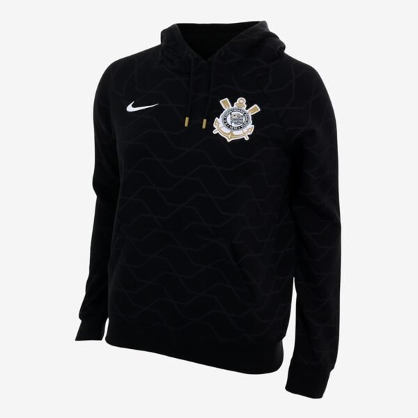 O Blusão Nike Essential Feminino Corinthians em tecido fleece mantém seu corpo aquecido enquanto você torce para o seu time.Guarde seus objetos essenciais no bolso frontal. Os punhos e a bainha canelados ajudam a garantir o caimento.BenefíciosO tecido fleece é macio, confortável e leve, igualzinho um moletom clássico.Os detalhes originais destacam seu orgulho pelo seu time.Detalhes do produtoCordão no capuzBolso dianteiroEstrutura: 80% algodão e 20% poliéster. Forro do capuz: 100% algodão.Lavagem à máquinaImportado