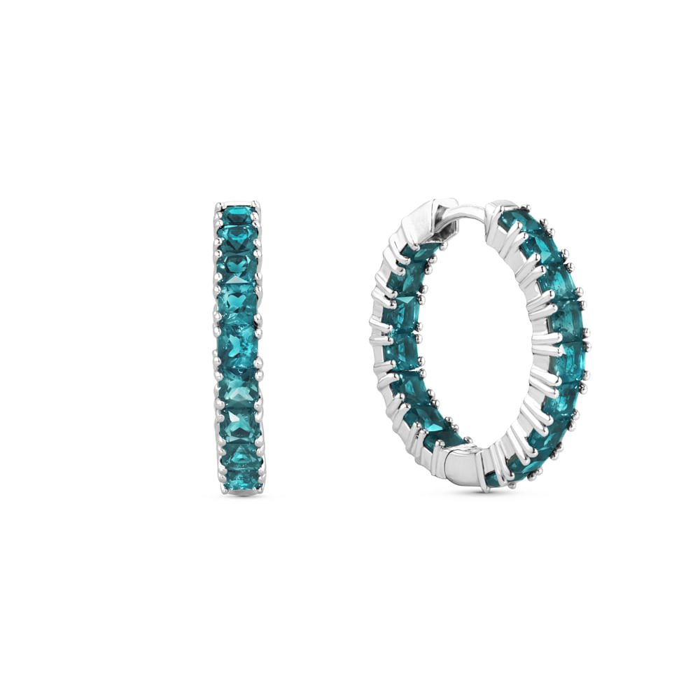 Brinco Argola Life Riviera II em Prata 925 com Pedras Verdes
