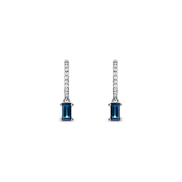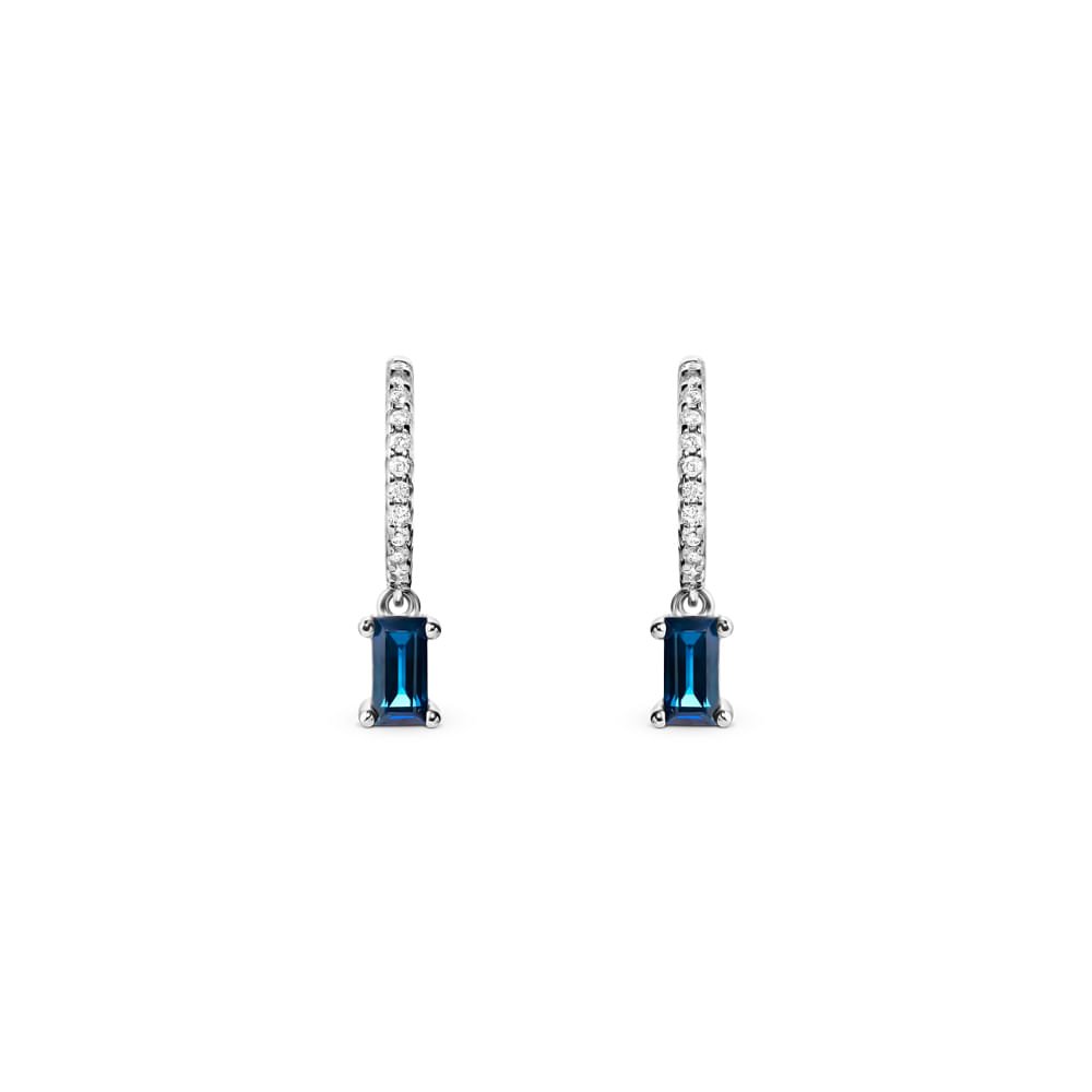 Brinco Argola Linea em Ouro Branco 18k com Safira Azul e Diamantes