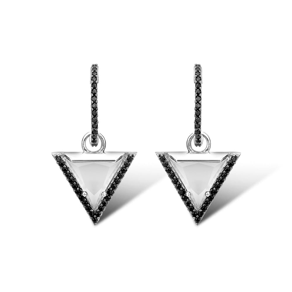Brinco Argola Vivara em Prata 925 com Quartzo Leitoso e Safiras Negras