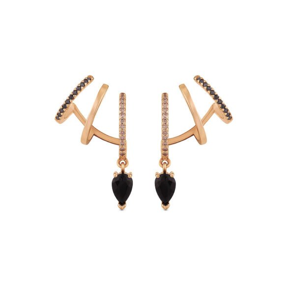 Brinco Ear Cuff Anelli em Ouro Rosé 18k com Quartzo Negro, Diamantes Negros e Brown