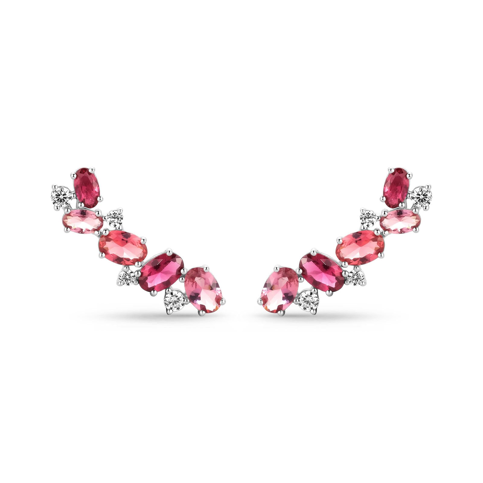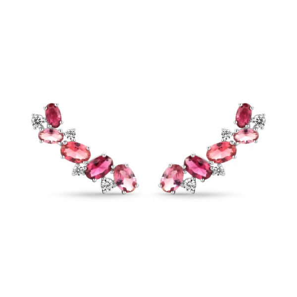 Brinco Earcuff Life Blossom em Prata 925 com Pedras Rosas e Incolores