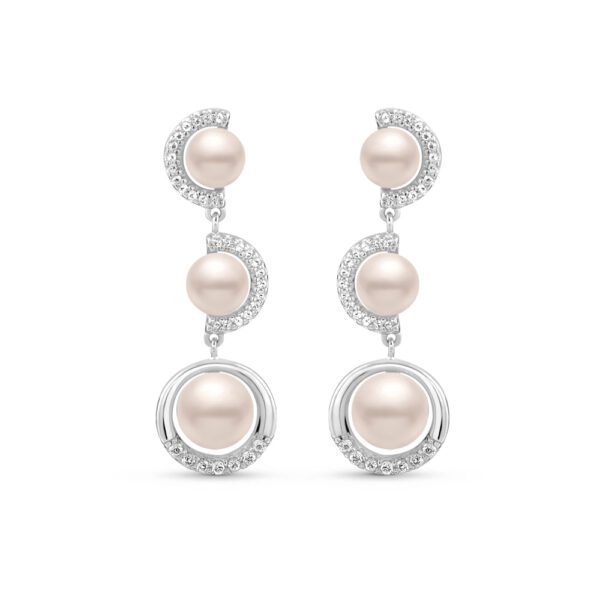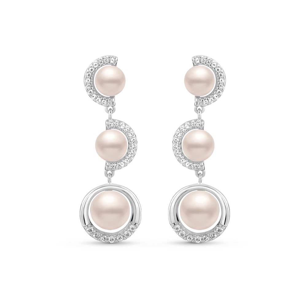 Brinco Eclipse em Prata 925 com Pérolas e Topázios Incolores