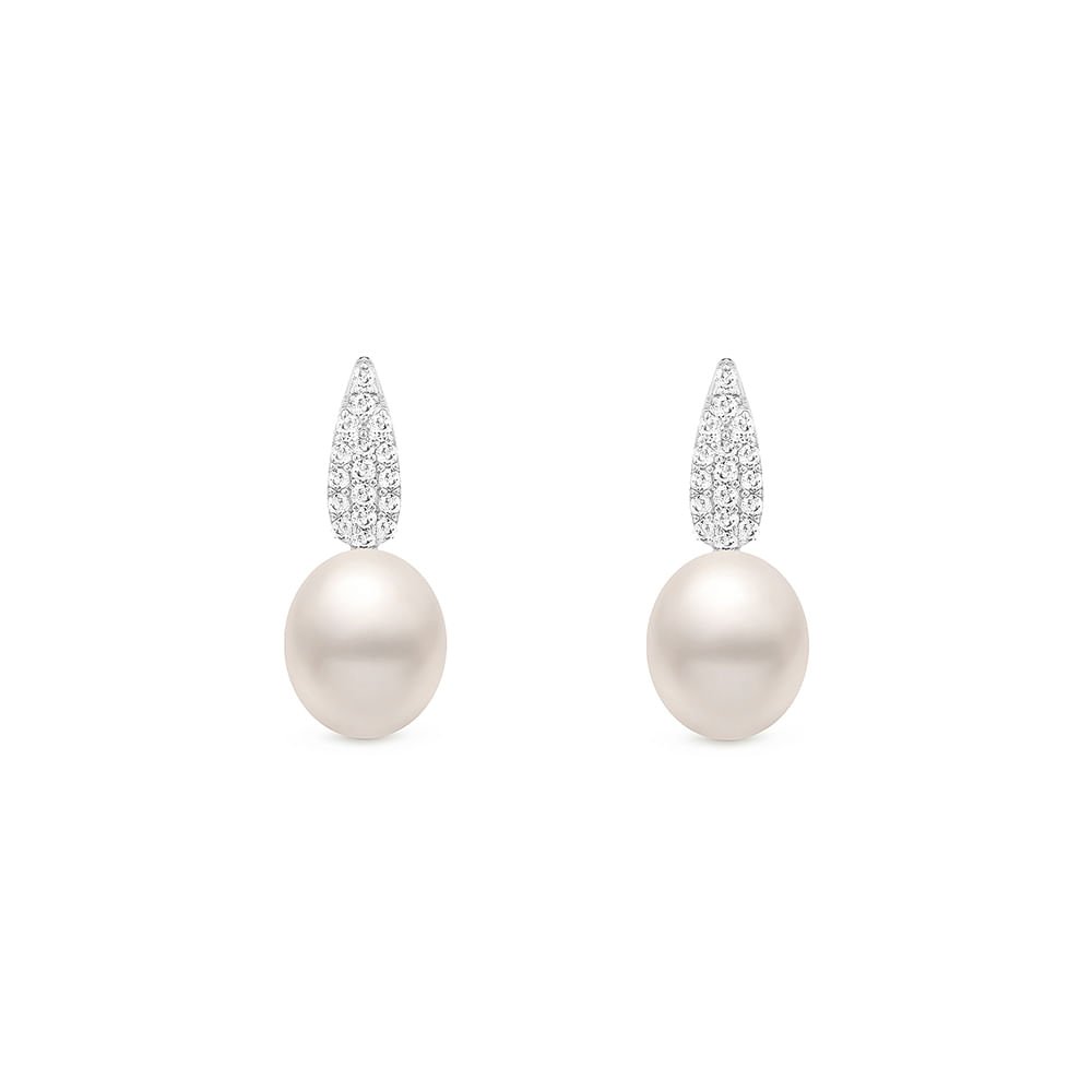 Brinco em Prata 925 com Pérola e Topázios Incolores