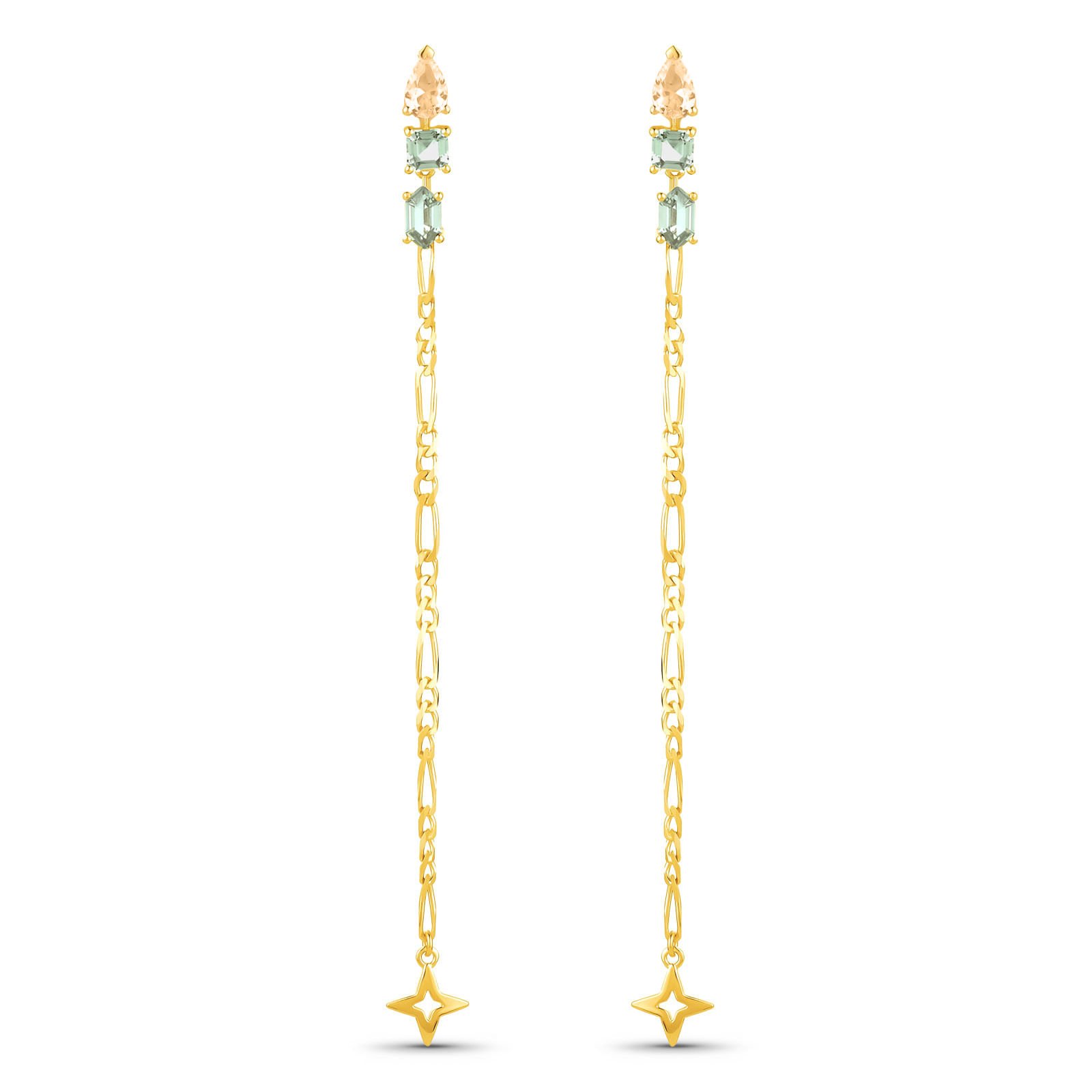 Brinco Life Bellini em Prata 925 com Banho de Ouro Amarelo 18k, Pedras Verdes e Amarelas