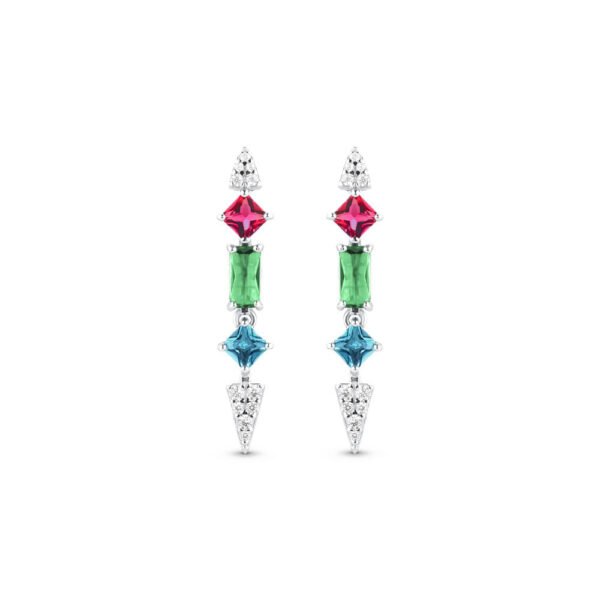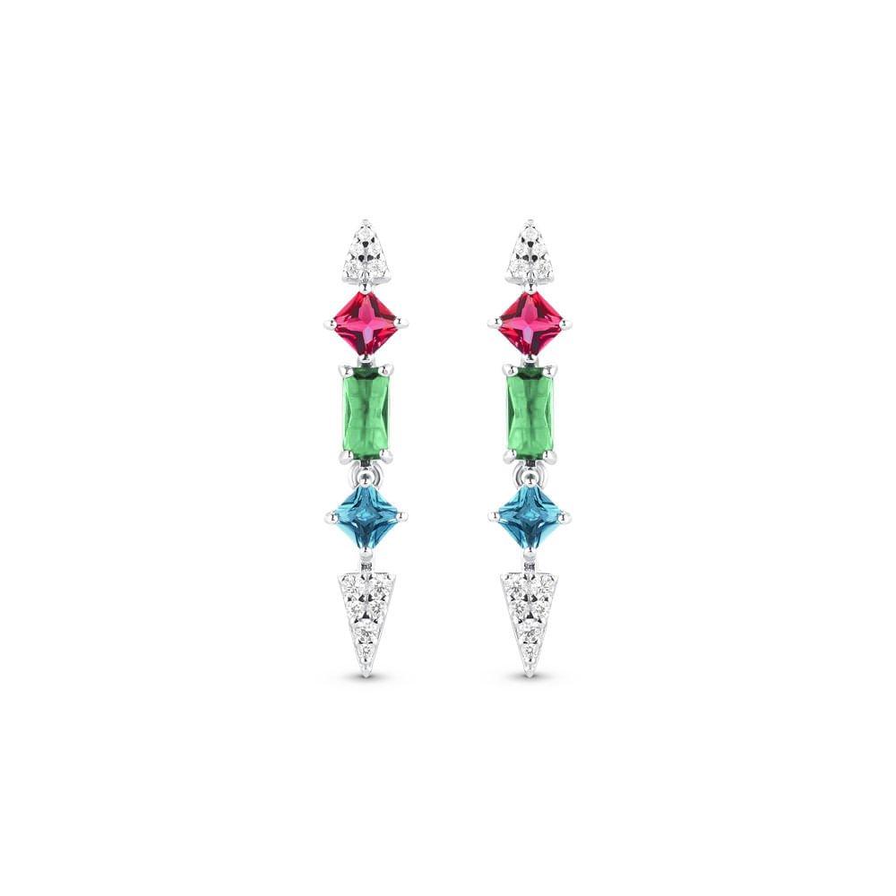 Brinco Life Coloré Prata Cristal Verde Rosa e Azul