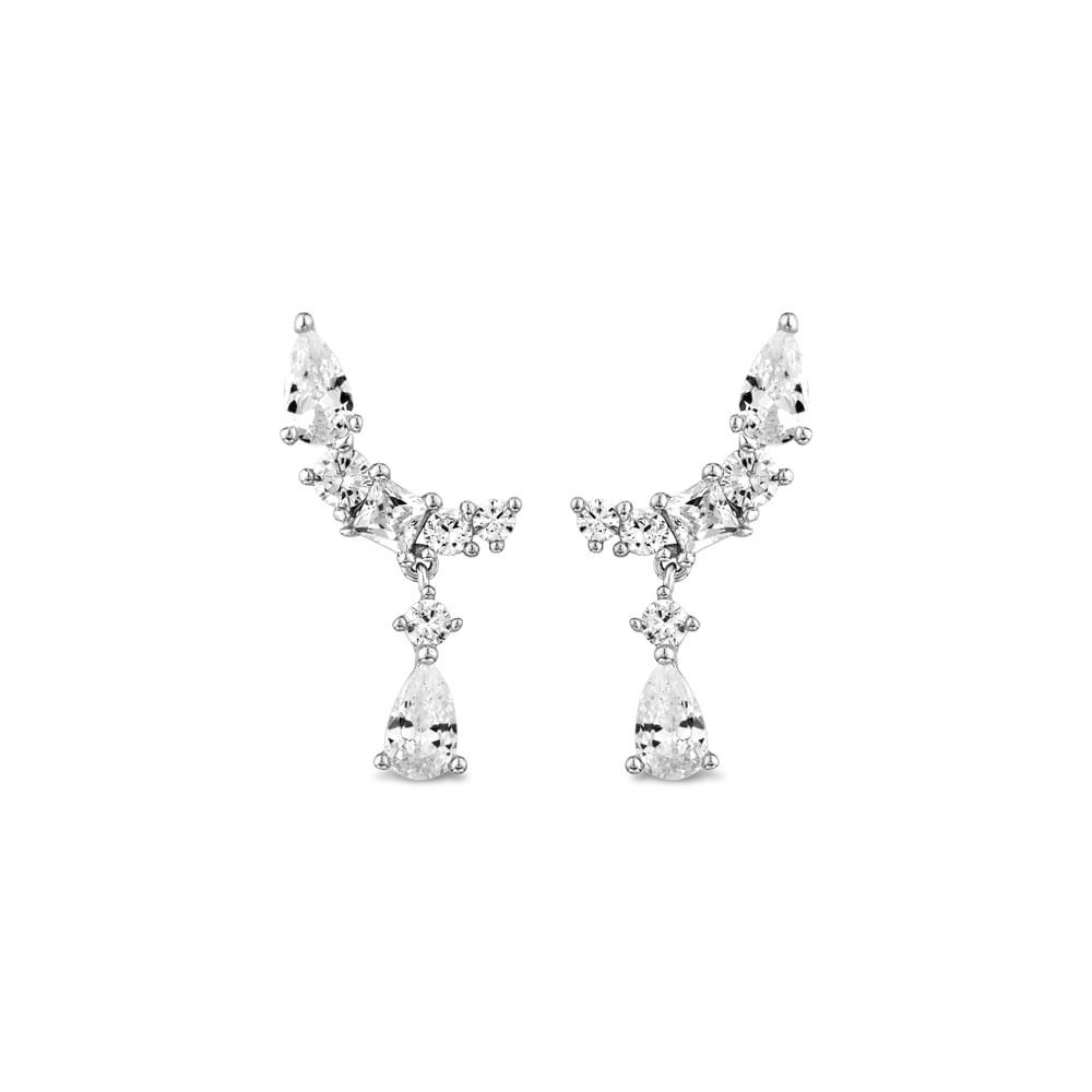 Brinco Life Gotas em Prata 925 com Pedras Incolores
