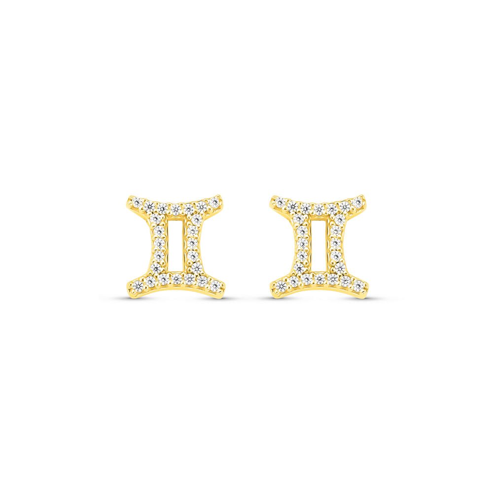 Brinco Life Signos Gêmeos Prata Banho em Ouro Amarelo Cravejado