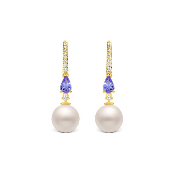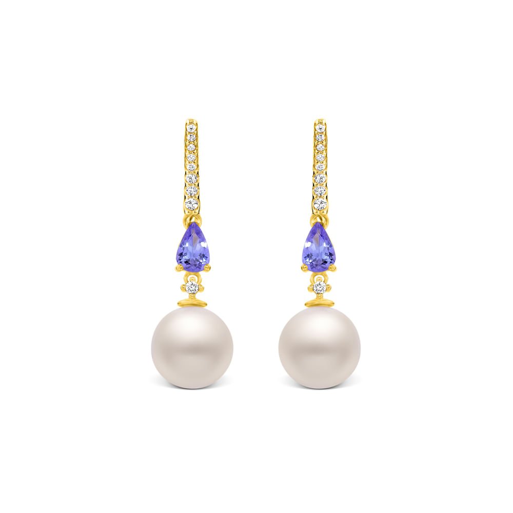 Brinco Reali em Ouro Amarelo 18k com Pérola, Tanzanita e Diamantes