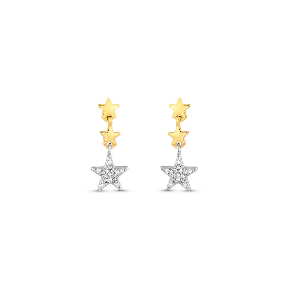 Brinco Teens Estrelas em Ouro Amarelo 18k em Ouro Branco 18k com Diamantes