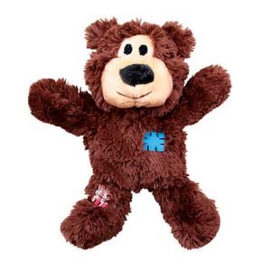 Brinquedo Pelúcia Ursinho Marrom Kong Wild KnotsÉ um brinquedo produzido com um material seguro e resistente que oferece um ótimo desafio aos cães, apresentando diferentes graus de dificuldade que estimularão até o cão mais esperto.Possui uma corda interna para aumentar a resistência e satisfazer instintos naturais, além de possuir estufagem mínima, é macio e durável.Além de divertir estimula mentalmente o seu cão e oferece vários jeitos de brincar com texturas variadas, som e um apito para aumentar a diversão.Medidas aproximadasPequenoAltura – 15 cmLargura – 10 cmComprimento – 5 cmMédioAltura – 20 cmLargura – 15 cmComprimento – 5 cm
