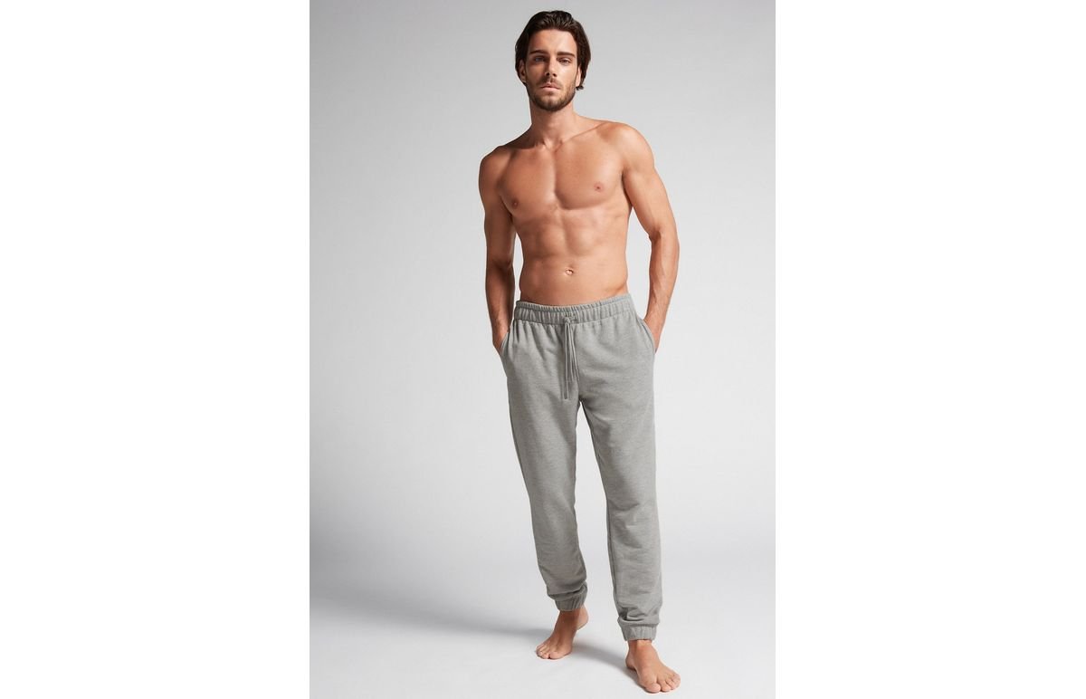 Calça em felpa leve de algodão com cordão na cintura, bolsos laterais e elástico na barra. Ideal para quem procura uma peça prática e confortável. Vestibilidade regular.O modelo tem 185 cm de altura e veste o tamanho G.