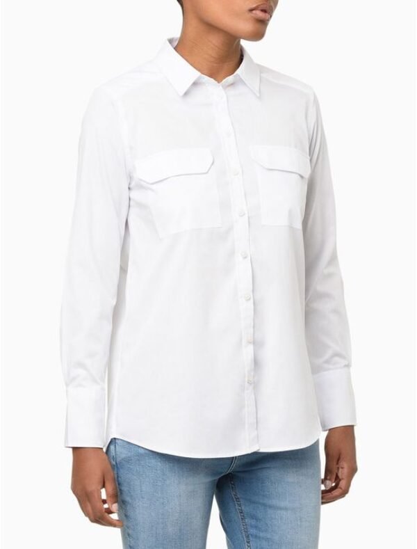 Camisa de Manga Longa Etiqueta Externa Calvin Klein Jeans – Branco Camisa de Manga Longa Etiqueta Externa Calvin Klein Jeans Branco 38