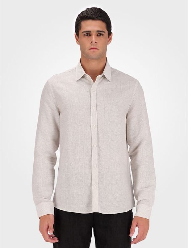 Camisa Masculina Manga Longa Slim Linen Cotton Stripes – Off White Camisa Masculina Manga Longa Slim Linen Cotton Stripes Off White 3