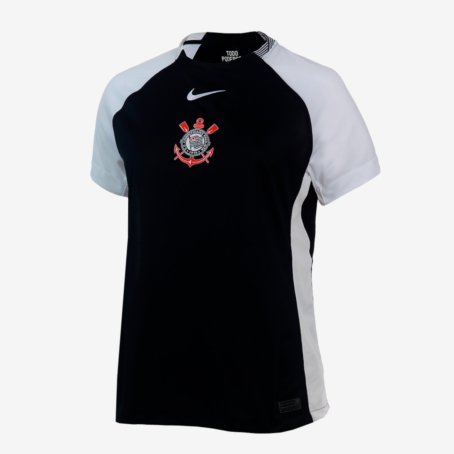 O DIA QUE A LOUCURA VIROU MUNDIAL Inspirada no mundial de 2000, a nova camisa II do Corinthians é inteiramente preta, com as áreas do ombro em branco, e o escudo do Corinthians e o swoosh centralizados no peito, em referência à icônica camisa campeã mundial. Dentro da gola, à altura do pescoço, um emblema com a inscrição “Todo Poderoso Timão” homenageia o grito que ganhou popularidade durante a competição e empurrou o Corinthians rumo ao título. Benefícios Tecnologia Nike Dri-FIT absorve o suor da sua pele para evaporação mais rápida, ajudando a manter você seco e confortável. O design apresenta detalhes baseados no que os craques usam. Detalhes do Produto 100% poliéster Lavável à máquina