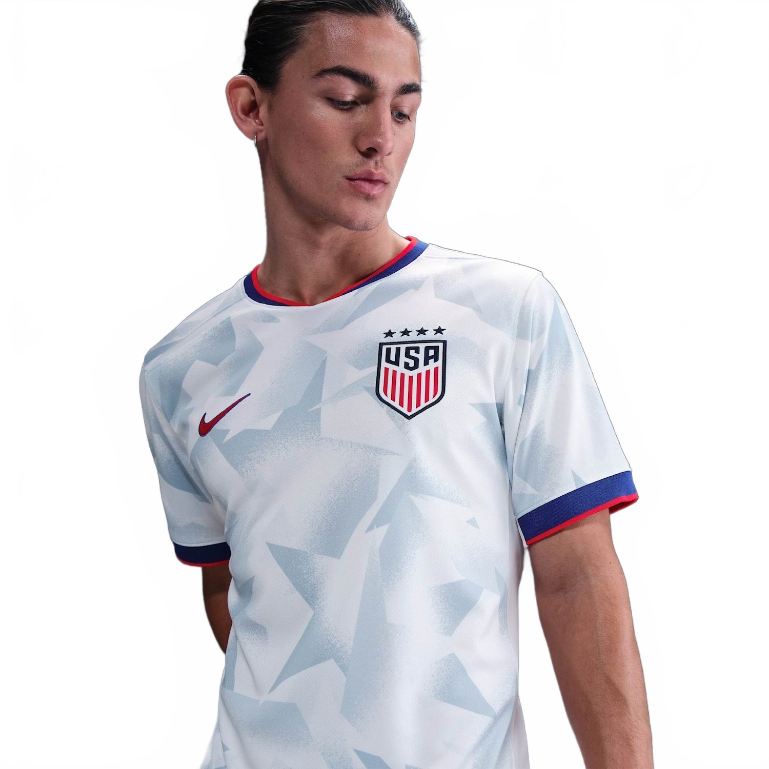 Desde 1985, a USWNT mostra o caminho para o futuro do futebol feminino. Comemore quatro estrelas e 40 anos de evolução com o primeiro uniforme de 2025. A estampa integral inspirada em denim apresenta estrelas interligadas que representam a unidade, a igualdade e a marca eterna que esta seleção deixou no esporte. Inspirado nos ícones A nossa coleção Torcedor Pro combina detalhes da camisa icônica com tecnologia antissuor para oferecer um look pronto para o jogo e inspirado no seu time favorito. Mantenha seu corpo seco A tecnologia Nike Dri-FIT absorve o suor para uma evaporação mais rápida, ajudando a manter seu corpo seco e confortável. Detalhes do produto 100% poliéster Lavagem à máquina Importado