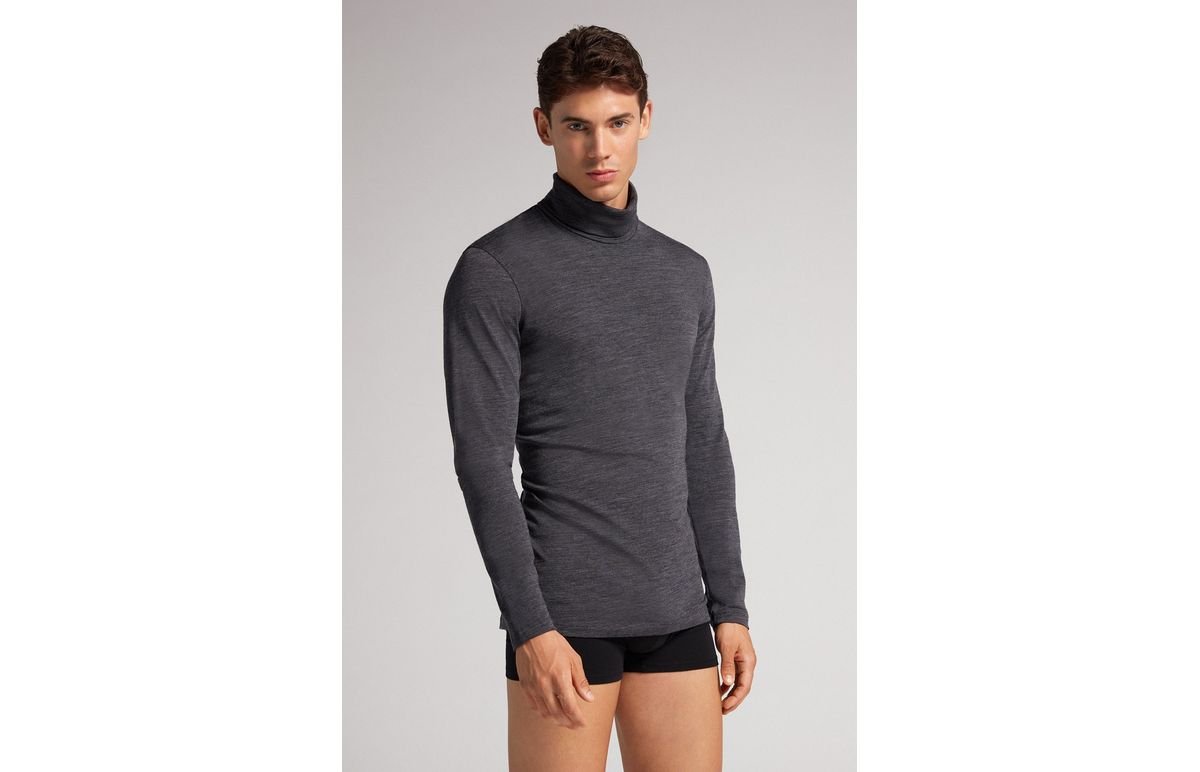 Camiseta de manga comprida em lã merino elástica com gola alta. A peça é adequada para todas as estações do ano devido à sua alta respirabilidade, que garante uma sensação constante de secura. Peça superwash que deve ser lavada a 30 graus. Confortável e agradável de usar. Produto vendido exclusivamente online e nas lojas Intimissimi Uomo.