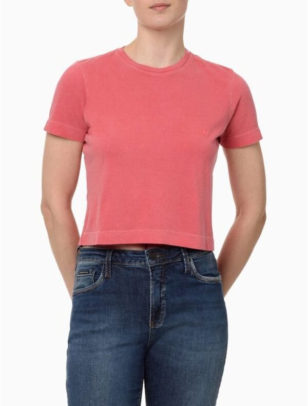 A Camiseta Feminina Calvin Klein Jeans é confeccionada com materiais de alta qualidade e acabamento impecável. Sua modelagem proporciona liberdade de movimento, enquanto o caimento leve e aconchegante o torna perfeito para que seja usado em diferentes ocasiões. CARACTERÍSTICAS • Manga Curta • Modelagem cropped • Técnica estonada • Confeccionada em 100% Algodão • Estampa frontal