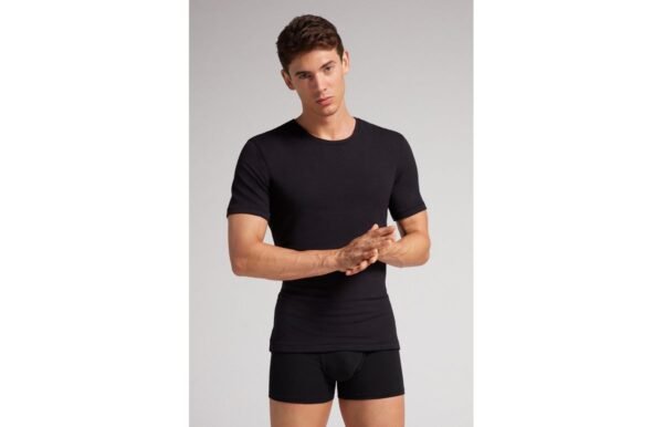 Camiseta de manga comprida com gola redonda, confeccionada em modal com misto de cashmere. Peça confortável e macia. O modelo tem 185 cm de altura e veste o tamanho G.