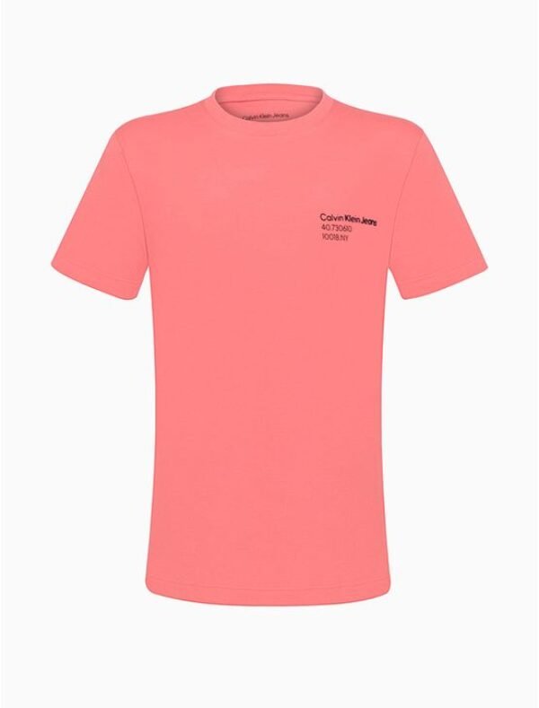 Camiseta Calvin Klein Jeans manga curta de meia malha, gola ribana e estampa exclusiva da marca. Modelagem básica.