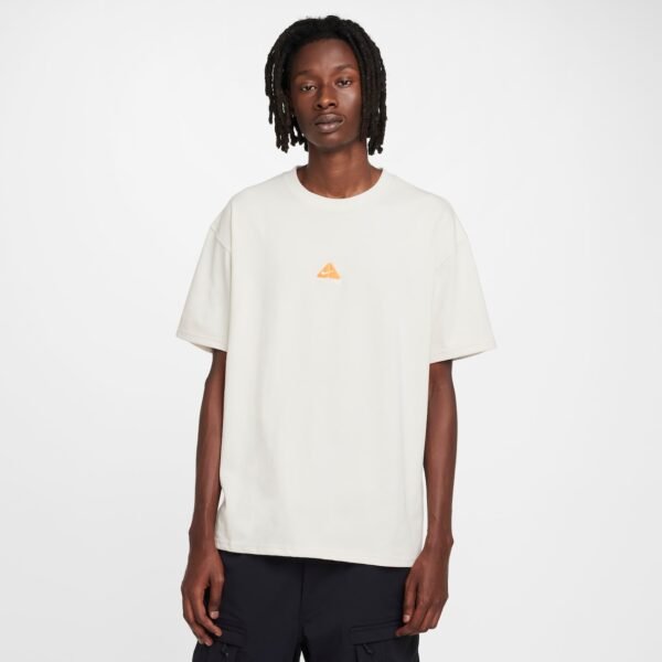 CONDIÇÕES AREJADAS.Respire o ar fresco com esta camiseta larga e macia. É como um clássico, com um ajuste levemente folgado. E quando estiver aproveitando o ambiente externo, o desenho em formato de pulmão permite lembrar que você deve parar, respirar e apreciar a paisagem. Este produto é fabricado com 100% de materiais sustentáveis, utilizando uma mistura de poliéster reciclado e fibras de algodão orgânico. A mistura conta com, no mínimo, 10% de fibras recicladas ou 10% de fibras de algodão orgânico.BenefíciosO tecido leve absorve o suor da sua pele para proporcionar uma evaporação mais rápida, ajudando você a se manter seco e confortável.O tecido jersey tem um toque suave e macio.Os detalhes costurados no peito e a etiqueta entrelaçada de woven trazem o espírito do ACG.Detalhes do produtoCaimento solto para uma sensação espaçosa63% poliéster reciclado e 37% algodão orgânicoLavagem à máquinaImportado