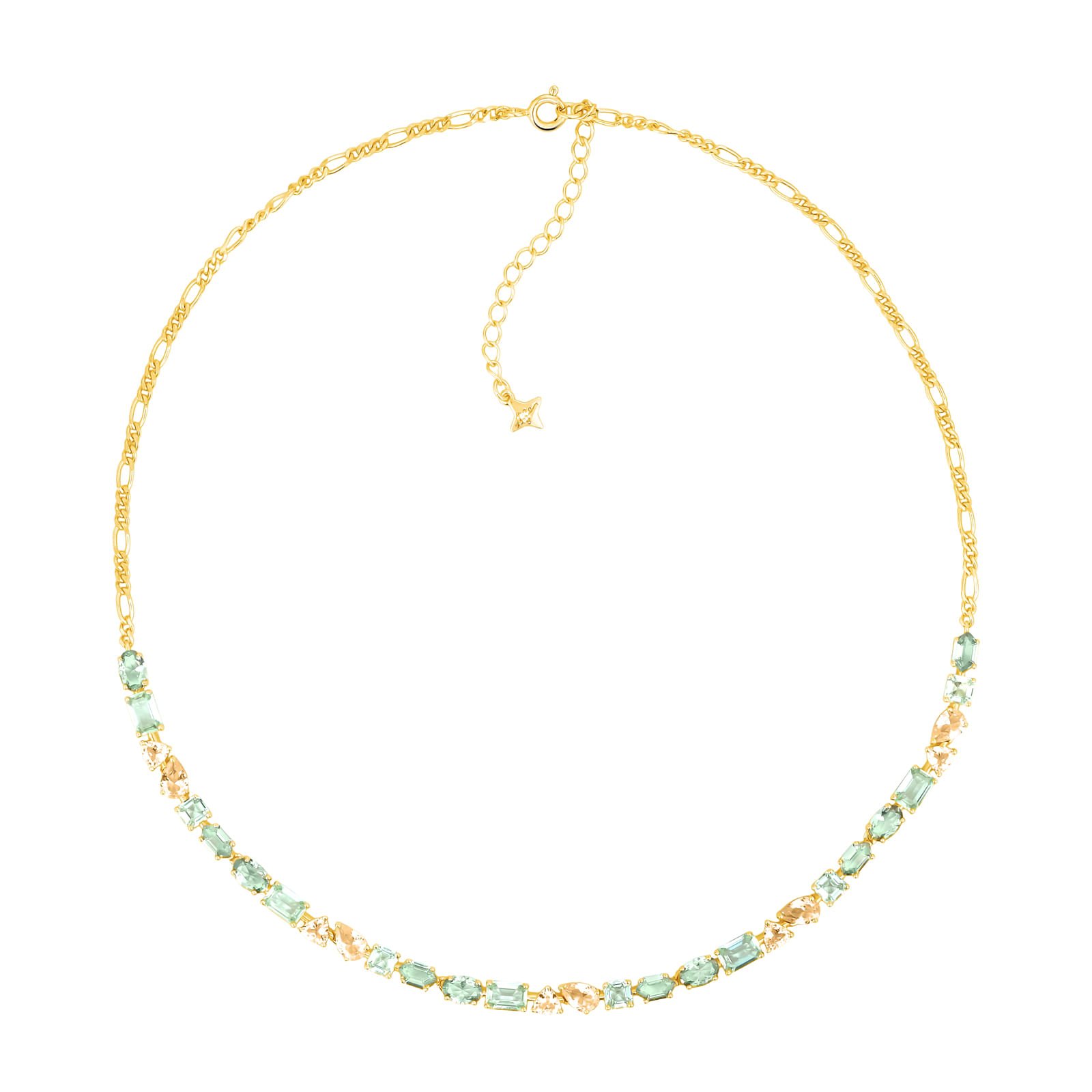 Colar Life Bellini em Prata 925 com Banho de Ouro Amarelo 18k, Pedras Verdes e Amarelas, 45cm