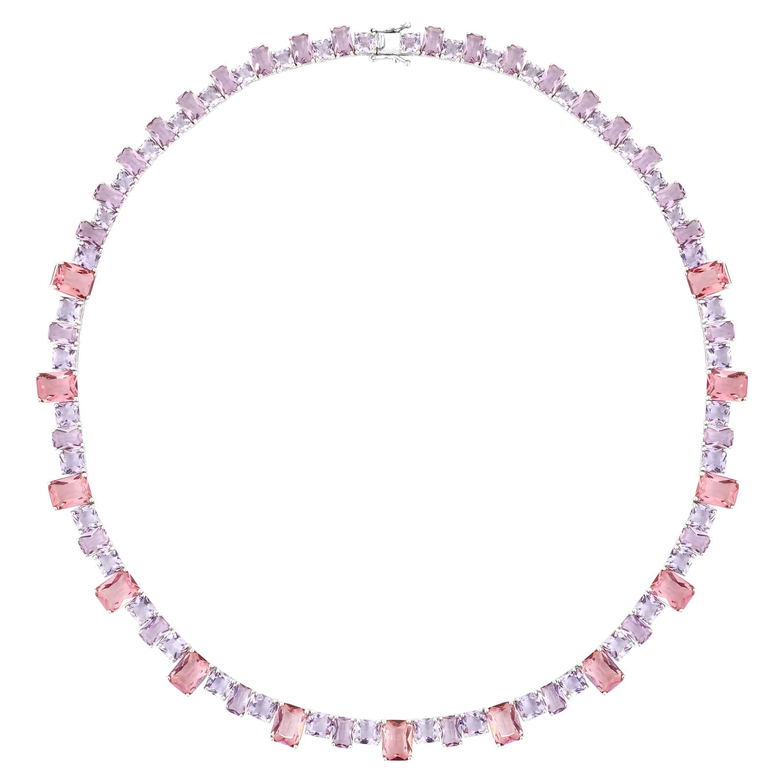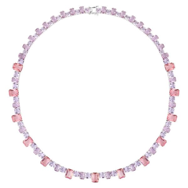 Colar Life Colors II em Prata 925 com Cristais Rosas e Roxos