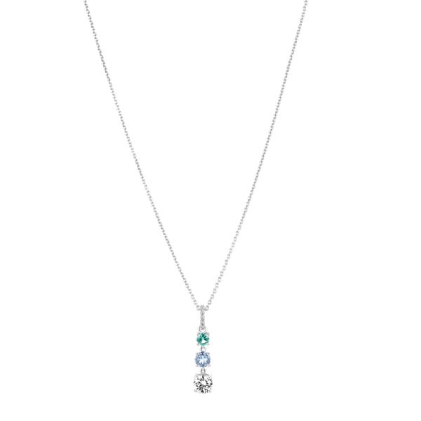 Colar Life Lotus em Prata 925 com Pedras Azuis e Incolores, 45cm