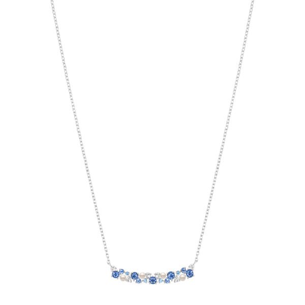 Colar Life Pacific em Prata 925 com Pedras Azuis, Incolores e Esferas Peroladas, 45cm