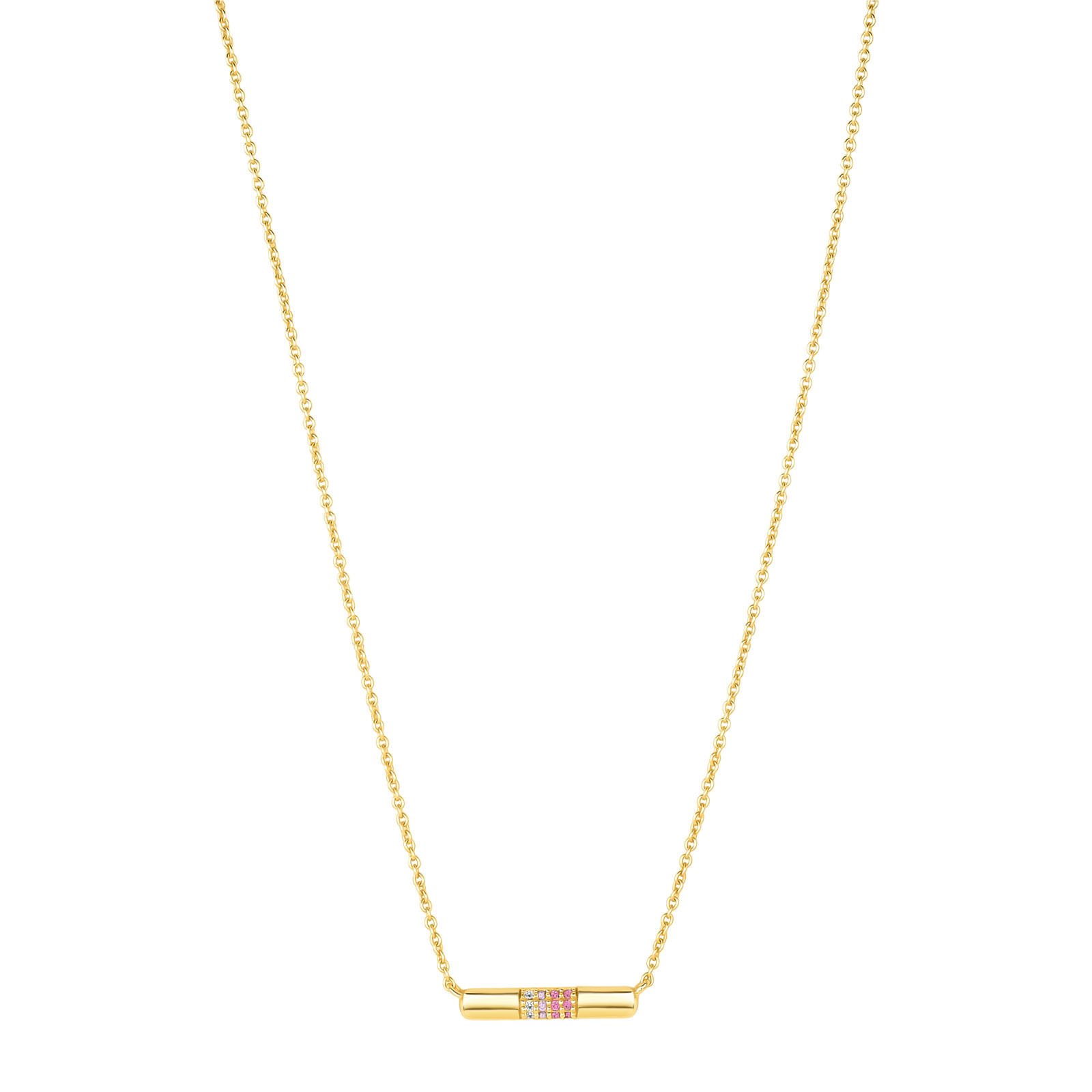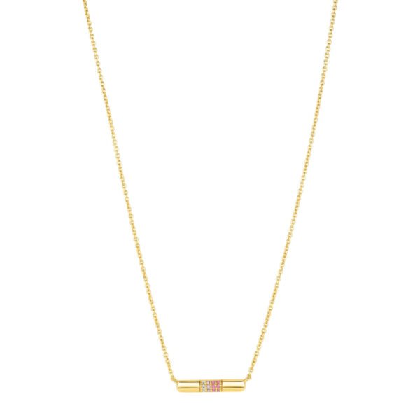 Colar Life Shine em Prata 925 com Banho de Ouro Amarelo 18k e Pedras Rosas, 45cm