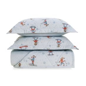 Colcha com Porta Travesseiros Casal 100% Algodão Sciare O jogo de colcha Sciare Casal é uma celebração da criatividade e diversão, retratando cachorros esquiando pelos Alpes italianos em ilustrações feitas à mão. Promete transformar o dia a dia do seu filho em uma jornada de alegria e imaginação, inspirando inúmeras aventuras e brincadeiras. Na busca por uma vida plena, encontramos a essência da felicidade em cada detalhe da rotina. Não existe um caminho único a seguir, mas sim uma jornada de harmonia entre o espaço do lar e a natureza. O lar é o lugar de profundas transformações, para o autocuidado e o bem-estar físico e emocional. Enquanto isso, a natureza nos renova, trazendo um frescor à nossa vida diária, adicionando um toque de luxo de forma simples e natural.Bolzano personifica esse equilíbrio. Harmonizando a natureza com a humanidade através de suas majestosas montanhas, campos floridos e tradições de um povo. Pensando nisso, Na Coleção Bene Vivere, convidamos você a buscar o seu próprio bem-estar, deixando-se encantar pela beleza da transformação.